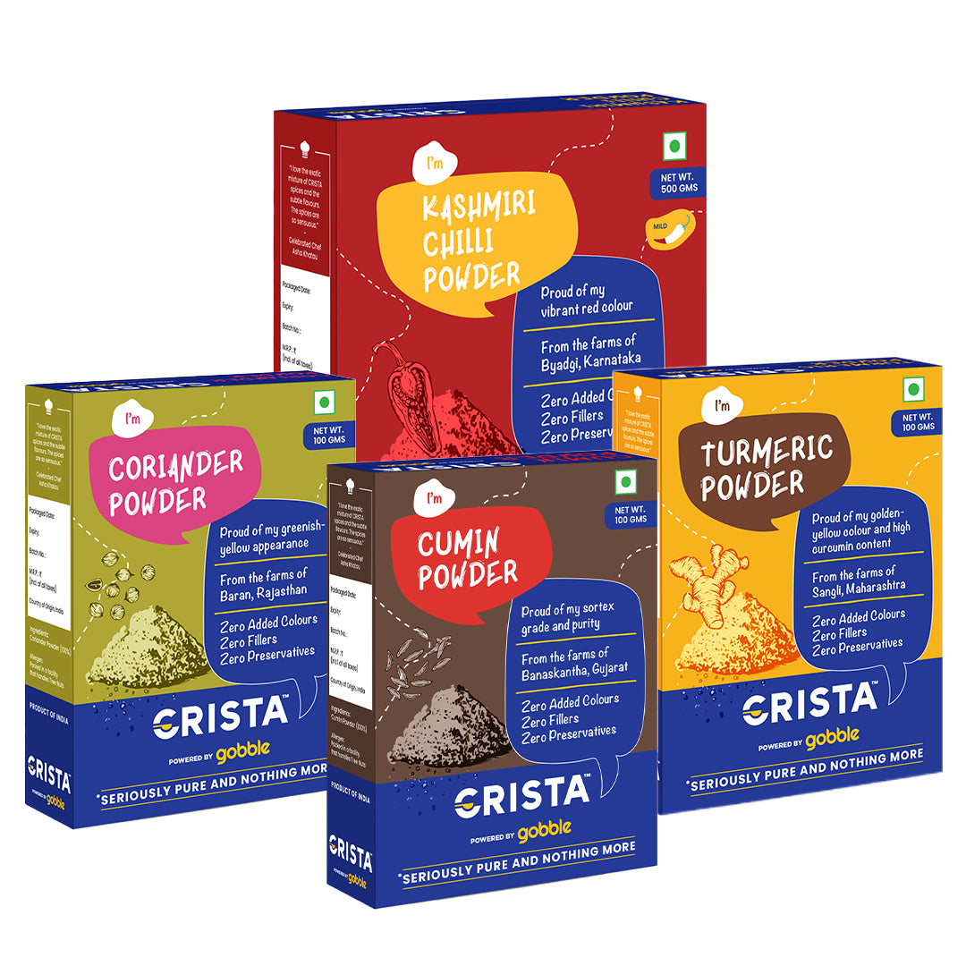 CRISTA Spices & Seasonings Combo Packs are curated based on utility, need and practical consumption of most Indian households. Select from multiple Combo Packs across categories of Whole Spices, Ground Spices, Indian Spice Blends and International Seasonings.