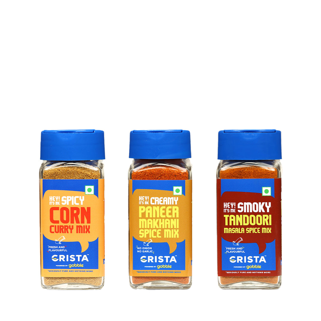 CRISTA Spices & Seasonings Combo Packs are curated based on utility, need and practical consumption of most Indian households. Select from multiple Combo Packs across categories of Whole Spices, Ground Spices, Indian Spice Blends and International Seasonings.