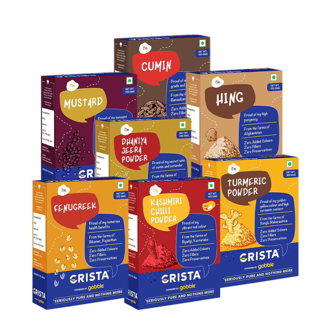 CRISTA Spices & Seasonings Combo Packs are curated based on utility, need and practical consumption of most Indian households. Select from multiple Combo Packs across categories of Whole Spices, Ground Spices, Indian Spice Blends and International Seasonings.